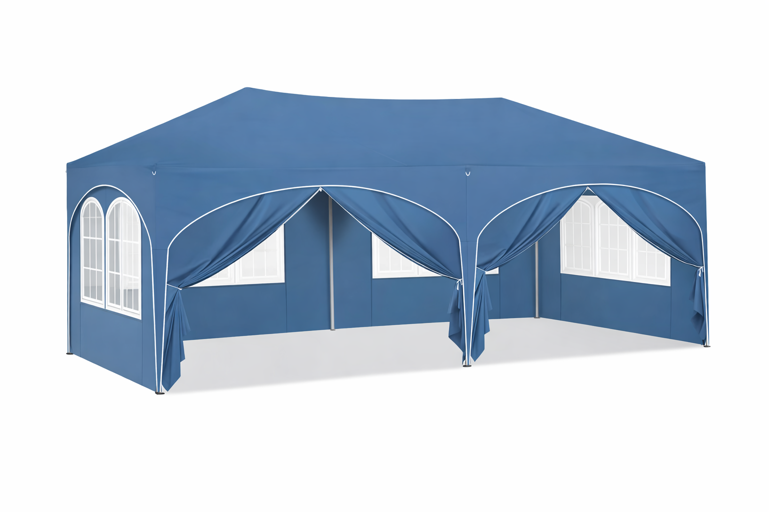 Tonnelle pliante de réception destinée à un usage extérieur pour les événements, réunions, marchés ou activités dans le jardin.